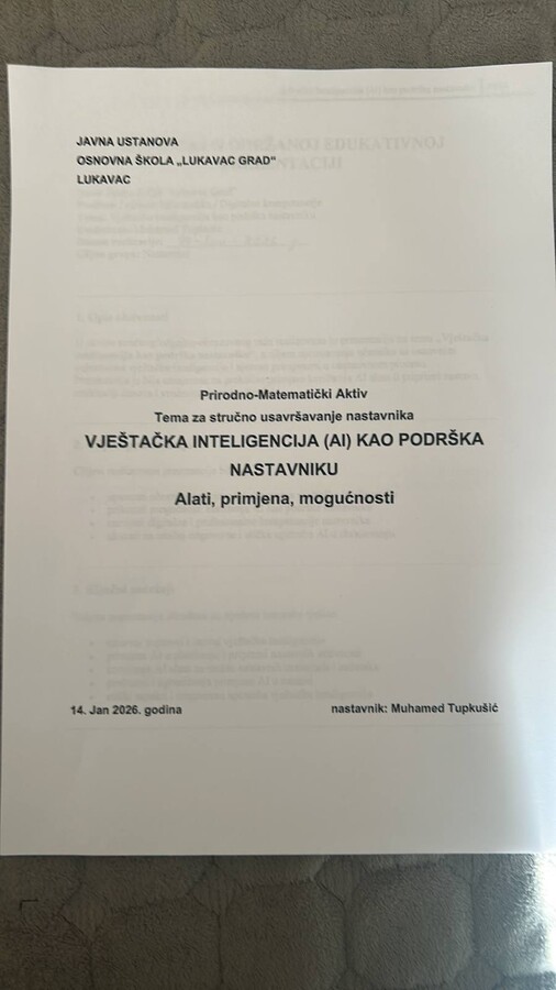 Prezentacija je bila usmjerena na praktične primjere korištenja AI alata u pripremi nastave, realizaciji časova i radu sa učenicima. Realizovana prezentacija doprinijela je unapređenju digitalnih kompetencija i profesionalnog razvoja nastavnika, te pružila osnovu za savremeni i odgovoran pristup korištenju vještačke inteligencije u obrazovnom procesu.